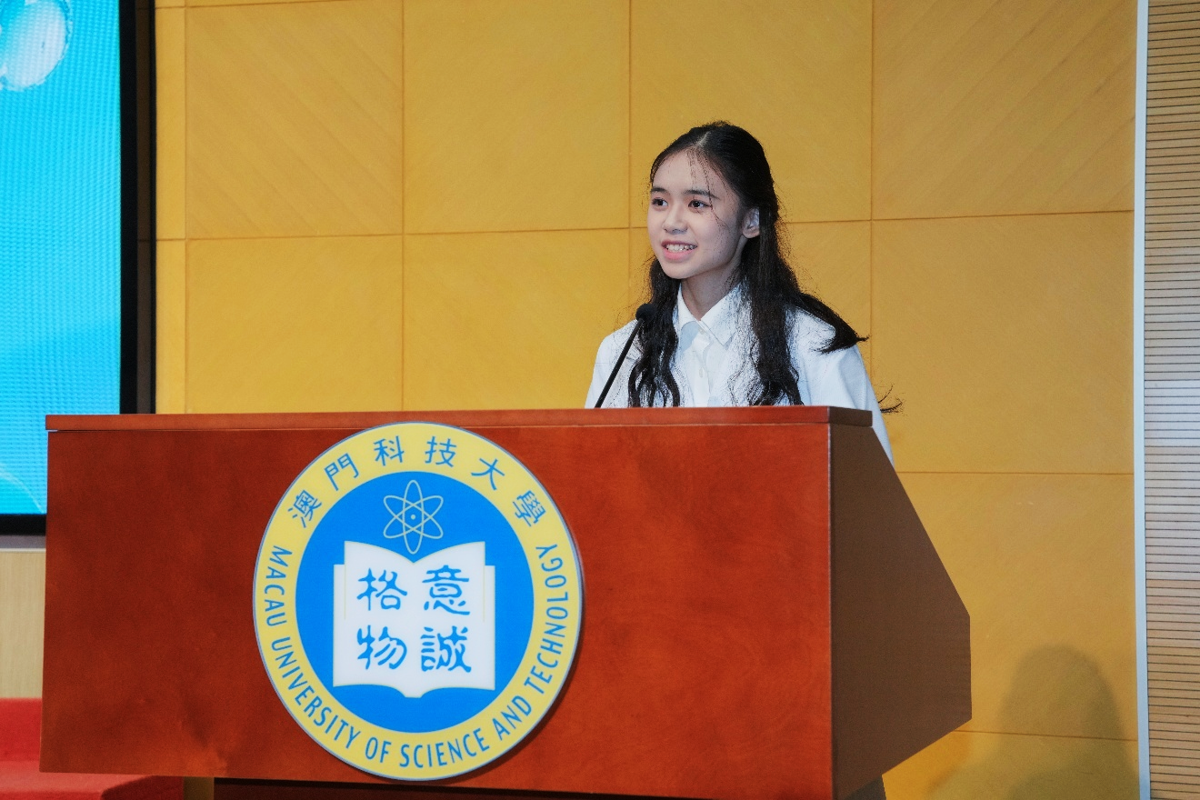 其後,一年級醫科生代表黃郁甯同學上台分享。她表示深感白袍之重——重在信任與使命。身處中西交匯的澳門,她期許自己以科學的嚴謹結合人文的溫度,精進臨床專業,同時鍛造同理與傾聽;在學習與實踐中“見病亦見人”,以終身學習的姿態迎接挑戰,與同儕互相砥礪,不負師長與家人期望,踐行“健康所系,性命相托”的誓言。