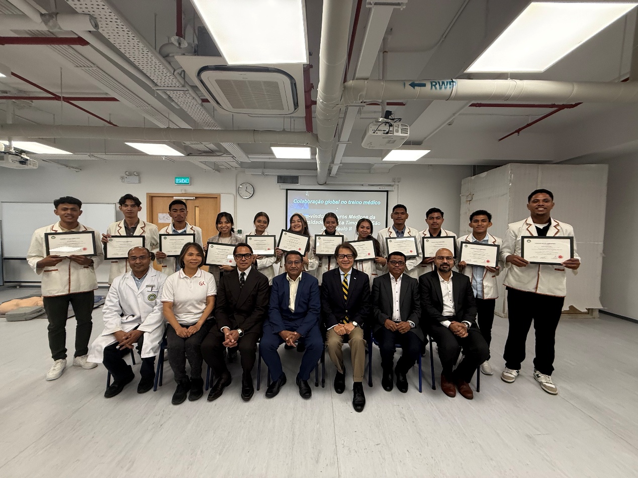 12月2日至4日,13位来自东帝汶圣约翰保罗二世天主教大学的医科学生到访澳门科技大学医学院展开一连三日的医学课程培训课程,透过一系列工作坊提升学员的医疗实践能力。