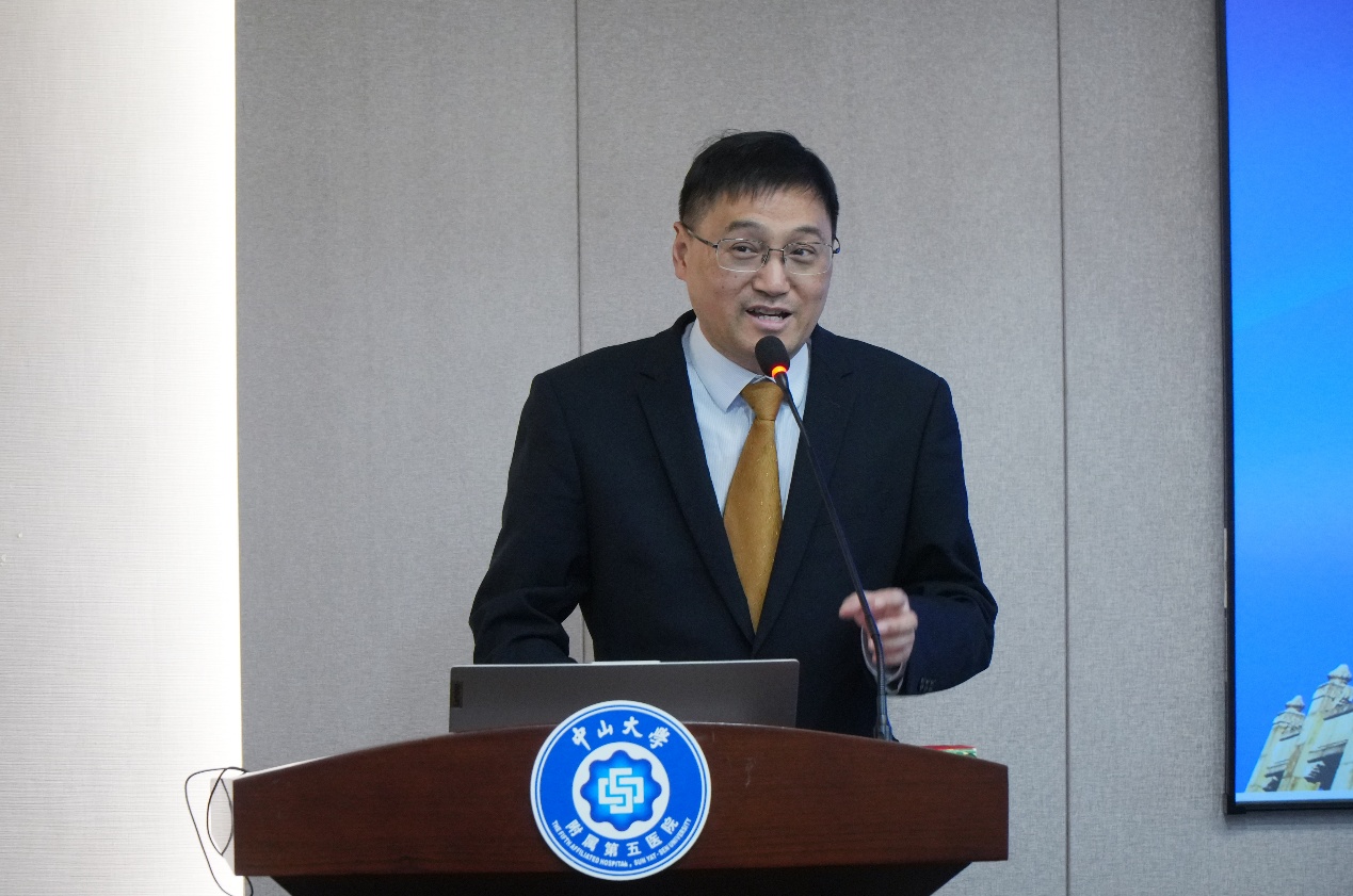 Finally, Assistant Dean Prof. Daniel Baptista-Hon from MUST Faculty of Medicine delivered a speech on behalf of the Faculty. He first expressed sincere gratitude to FAHSYSU for their continuous support and contributions to MUST Faculty of Medicine. He highlighted that the opportunity for fifth-year and sixth-year medical students to undergo clinical training at FAHSYSU has played a crucial and far-reaching role in the overall development of the medical curriculum at the Faculty. Subsequently, Prof. Han encouraged the students present to cherish this valuable experience, urging them to take advantage of this opportunity to learn from experienced clinicians, understand different healthcare systems, and enhance their clinical reasoning, professional competence, and teamwork skills. He hoped that students would approach this exchange program with a thirst for knowledge, a humble spirit, and a determination to pursue excellence.